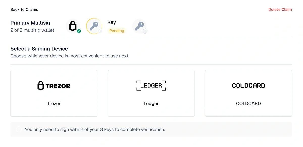 This pattern carries through to the claim details screen. Once a multisig claim is fully verified and connected to your account, you see the same key avatars, status rings, and can switch between keys with a click. Consistency builds confidence.